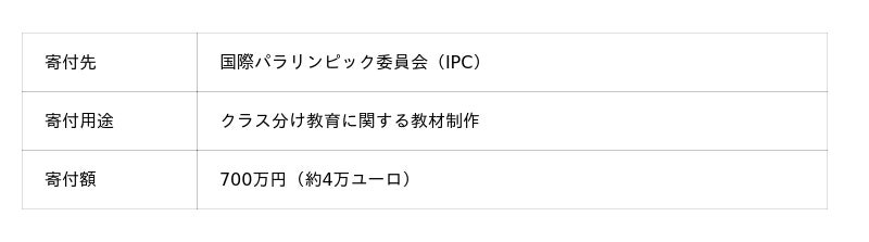 公益財団法人日本財団パラスポーツサポートセンター(パラサポ、所在地:東京都港区、会長:山脇康)は、国際パラリンピック委員会(IPC)が行っているクラス分け教育に関する教材制作を支援するため、700万円(約4万ユーロ)を寄付しました。