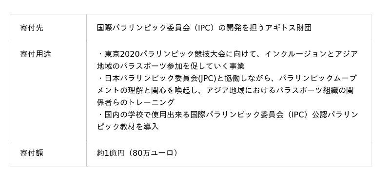 第1弾(2016年): 国際パラリンピック委員会(IPC)の開発を担うアギトス財団と業務提携