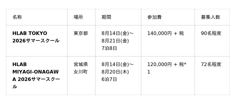 ・HLAB TOKYO 2026 サマースクール(東京都)