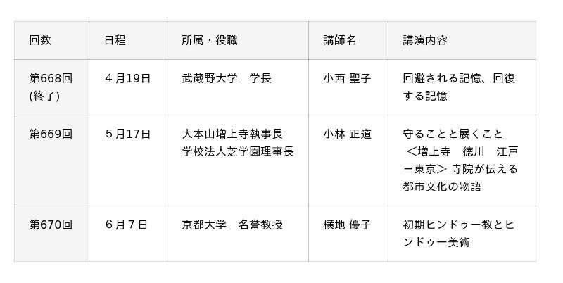 ■5月17日(日) 日曜講演会 第669回「守ることと展くこと <増上寺 徳川 江戸-東京> 寺院が伝える都市文化の物語」: