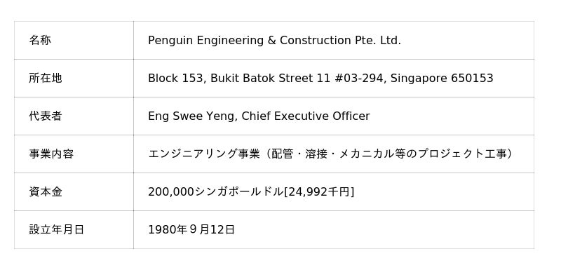Penguin Engineering & Construction Pte. Ltd.の株式取得(子会社化)に関するお知らせ