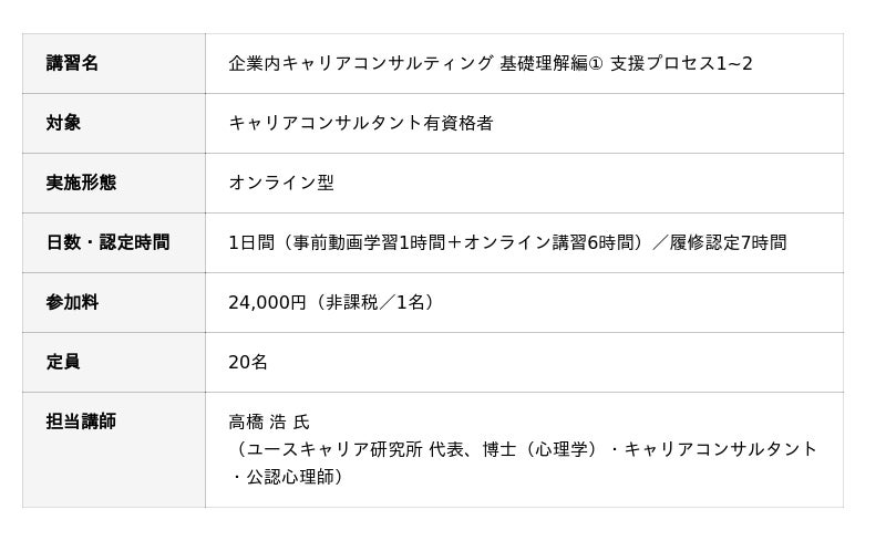 「企業内キャリアコンサルティング 基礎理解編1. 支援プロセス1~2」の詳細・お申し込みはこちら
