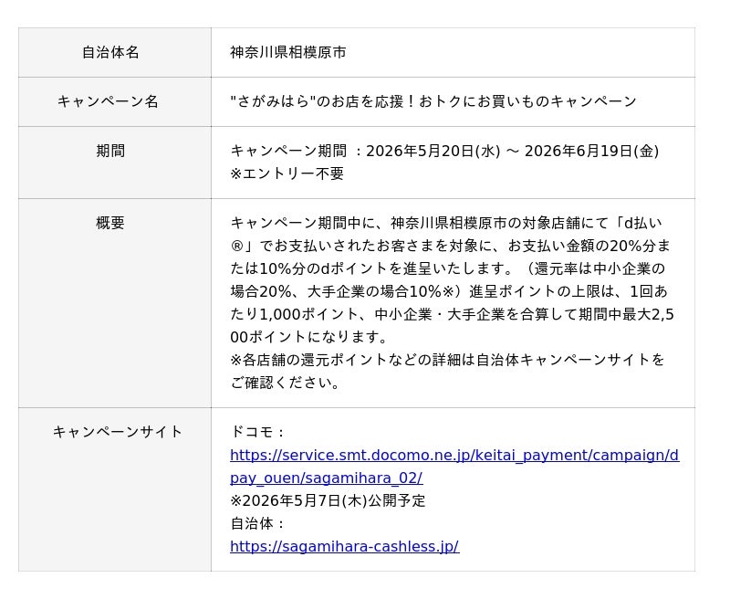 5月開始の「dポイント」「d払い」自治体キャンペーン