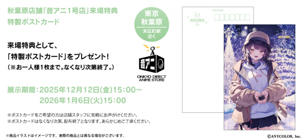 また12月12日(金)15:00~12月14日(日)20:00は混雑を想定し、ご入店整理券の配布をさせていただきます。なお整理券配布の情報、更新につきましては適宜「音アニ」公式X(@ONKYO_ANIME)にてお知らせいたします。