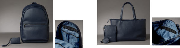 また、2022年に販売開始し好評だったシボレザーリュックとトートバッグをリニューアルし、3月より販売。より多様なライフスタイルにフィットするよう、内装をブラッシュアップしました。こだわりのネイビーカラーで高級感のある見た目はそのままに、内装カラーを「ブルーグレー」に刷新。バッグを開けるたびに、空の旅を連想させる洗練されたカラーが目に飛び込みます。明るめのトーンにすることで、中の荷物が見つけやすいという実用性も兼ねています。しっかりとした質感ながら、毎日手に取りたくなる軽やかさが魅力です。