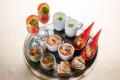 宮城県産森林どりのハーブロースト みかんソース / サーモンムースと雪菜のエスプーマのパニプリ