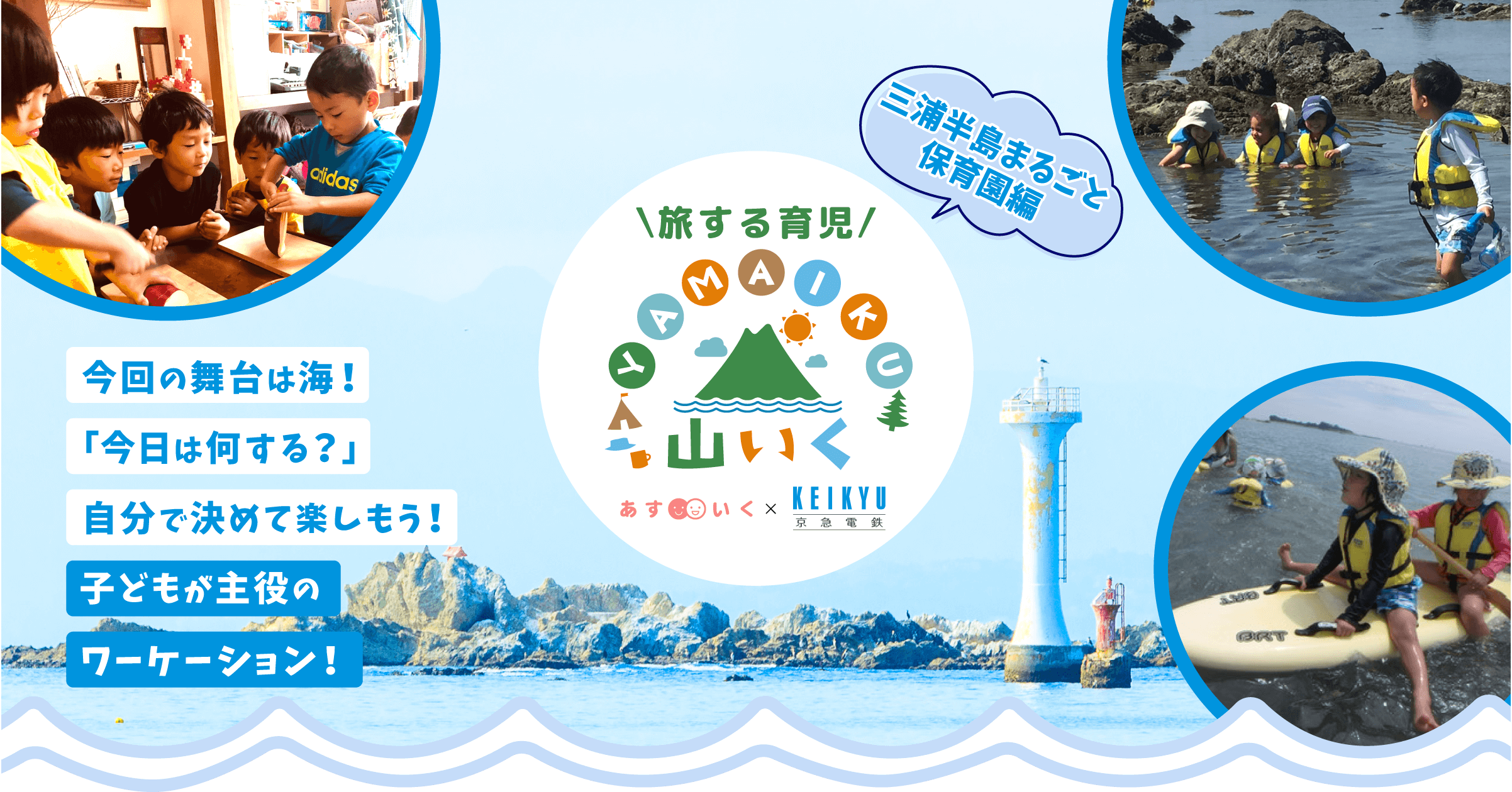 三浦半島全域を一つの“保育園”と見立て,本物の自然の中でお子様をお預かりし,葉山の海での自然体験や野外活動を楽しむ間,保護者も日常の喧騒から離れてリフレッシュやワーケーションなど自由に過ごせる,一時保育プログラムを実証販売し,新しい親子の旅の形を提供しました。