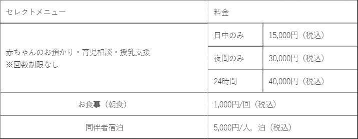 ホテル宿泊や育児相談,授乳支援といった基本的なプランに加え,3つの託児プランや食事等のオプションを自由に選択することで,利用者が自身の予算や必要なサービスに合わせてカスタマイズが可能です。予約や利用のハードルを下げ,より身近で使いやすい産後ケアを提供いたします。