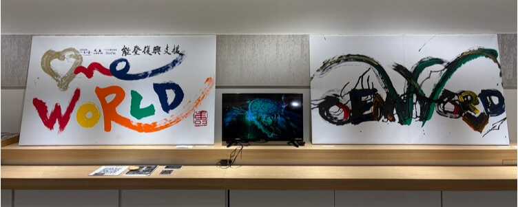 本作品は、アーティスト・GACKT氏が本プロジェクトのために揮毫(きごう)した書「ONE WORLD」を期間限定で展示しており、1月13日(火)まで和蔵場でご覧いただけます。