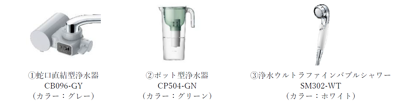 本キャンペーンでは、半年使えるカートリッジを搭載した蛇口直結型浄水器「CB096」、食卓を彩るポット型浄水器「CP504」、浄水ウルトラファインバブルシャワー「SM302」の3商品を、クリンスイ公式Instagramのフォロワーを対象に、抽選で26名様へプレゼントいたします。