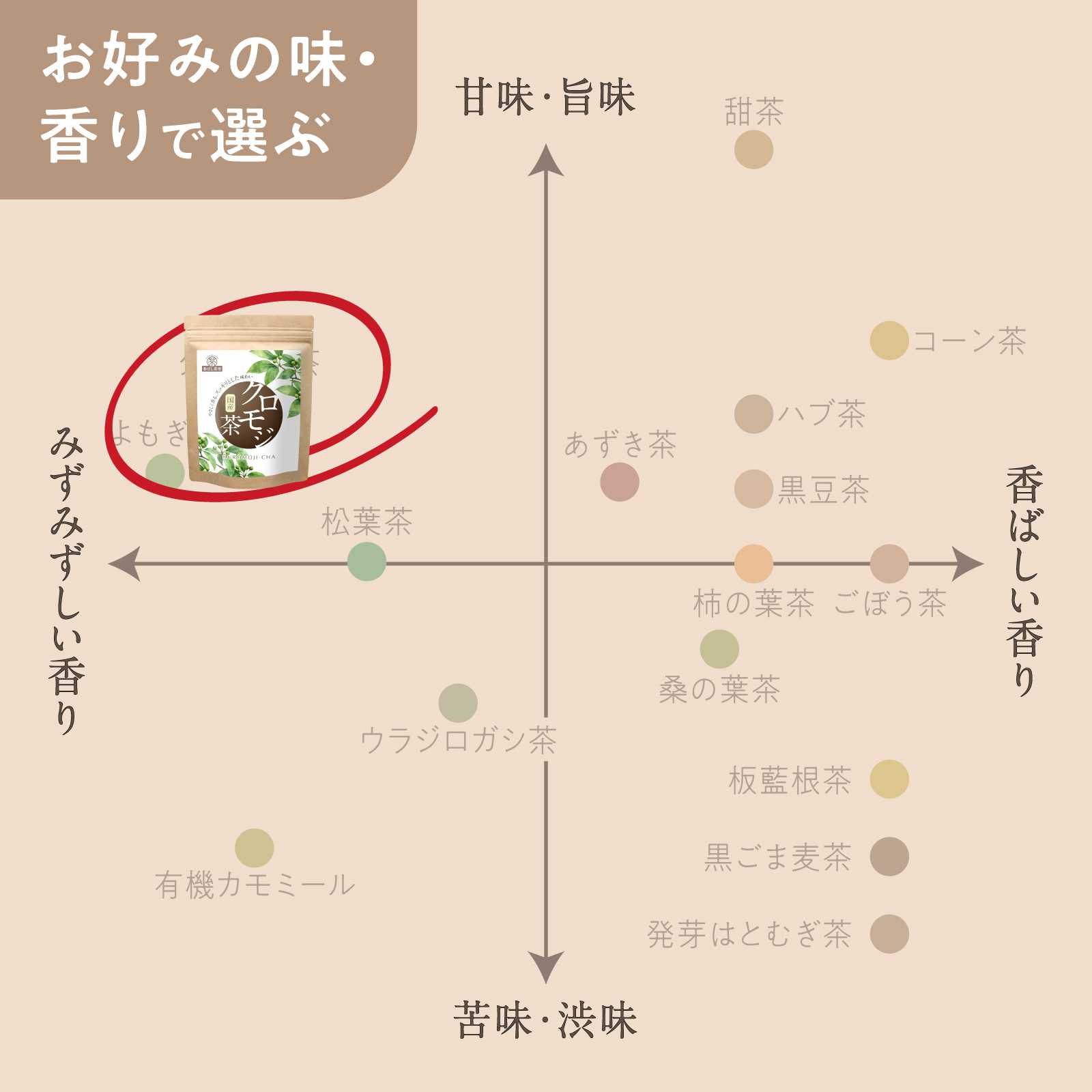 当製品は、徳島県の風通しのよい山地で採れた「クロモジ」を使用した、爽やかさとウッディな落ち着いた香りが特徴の国産ハーブティーです。四国産のクロモジは「1,8-シネオール」を多く含むと言われており、季節の変わり目の体調管理をサポートします。