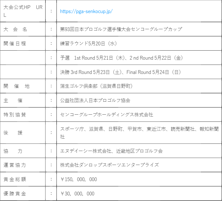 【 「日本プロゴルフ選手権大会センコーグループカップ」 大会概要】