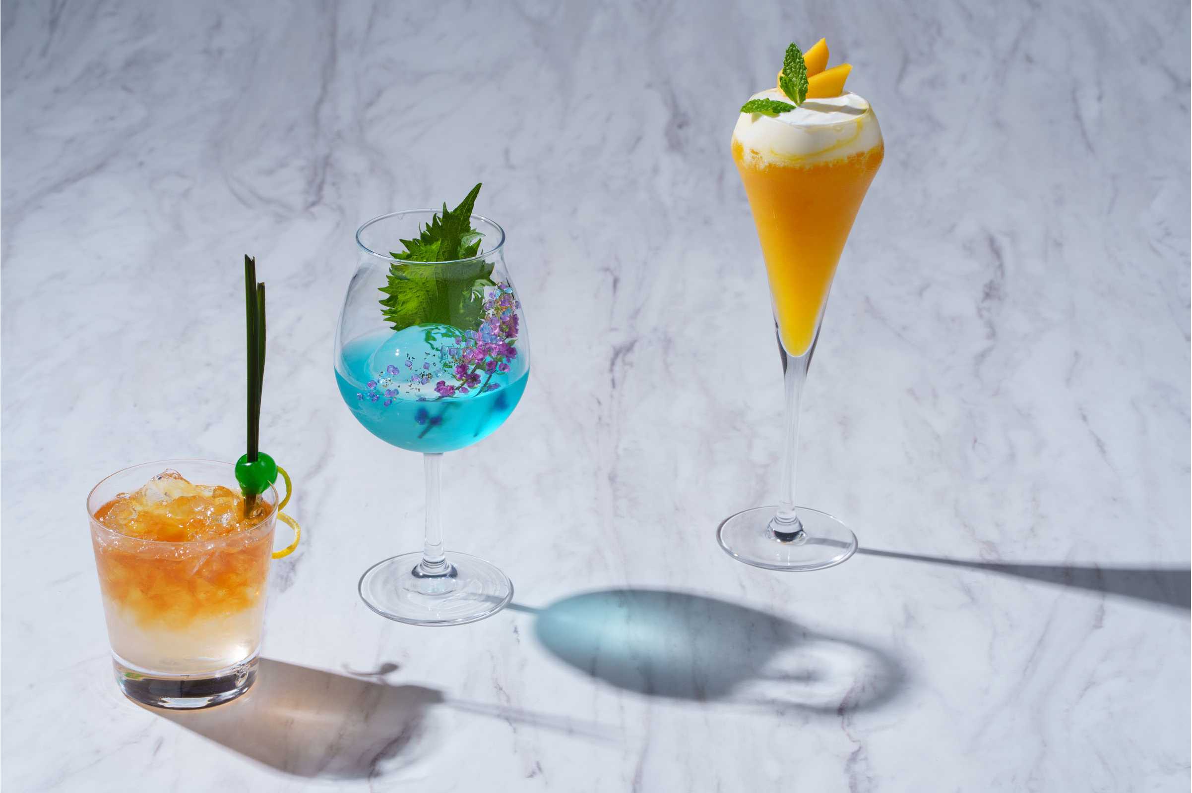 同期間には、ラム酒にマンゴージュースを合わせ、ヨーグルトと生クリームを合わせたクリームをあしらったフローズンカクテル「MANGO Daiquiri(マンゴーダイキリ)」も提供。パフェとともに味わうことで、爽やかな余韻がより印象的に広がります。そのほか、「Citrus Tea Breeze(シトラスティーブリーズ)」と、青しそを添えた「Starry Rain(スターリーレイン)」の2種類のシーズナルカクテルもラインナップいたします。