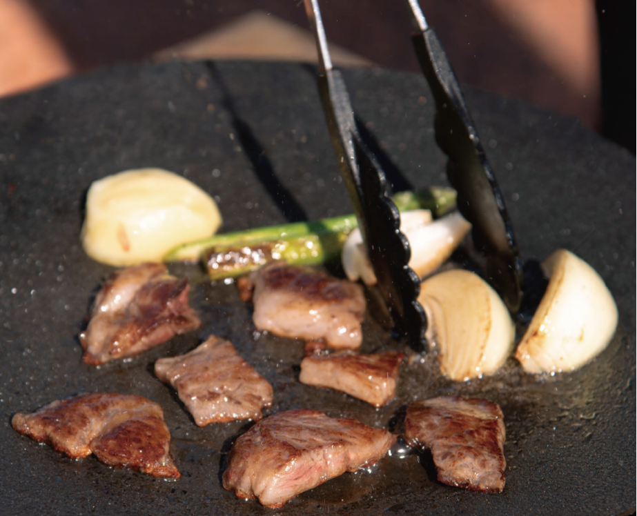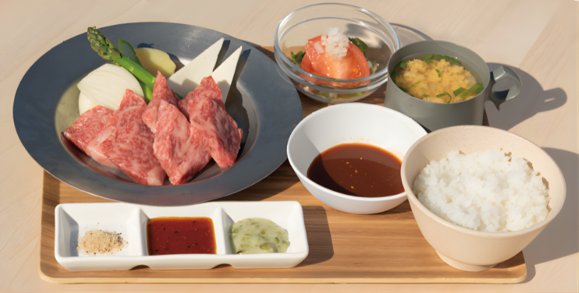 1周年を記念した地域の食材を使った新メニューがレストランに登場。旬の野菜と、人気の焼いて食べるミルクチーズと、肉の旨味を引き立てるこだわりのソース(シェラスコスパイス、オニオンガーリックソース、しゃきしゃきワサビのフレンチソース)でお楽しみいただけます。