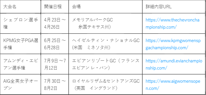 ※2:上記大会に「全米女子オープン」を加えた5大会が女子5大メジャーと呼ばれる