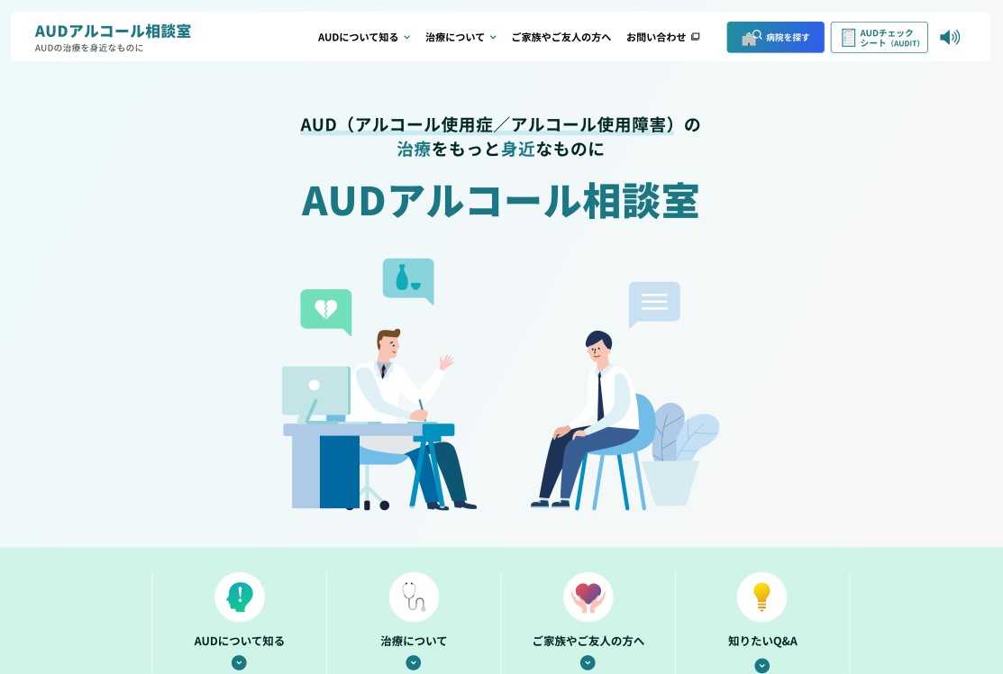 2025年9月1日には、一般向けのAUD(アルコール使用症/アルコール使用障害)疾病啓発サイト「AUDアルコール相談室」を開設する予定です。