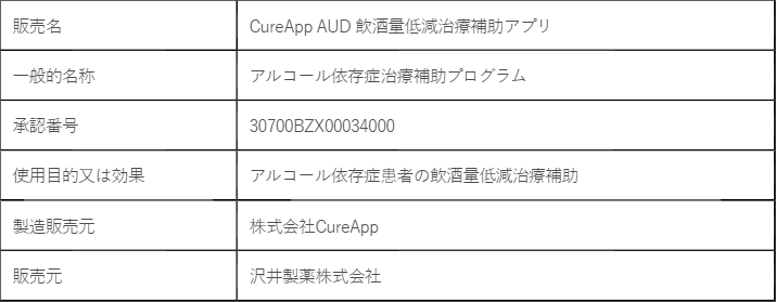※1:販売名:CureApp AUD 飲酒量低減治療補助アプリ