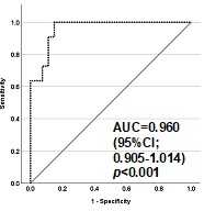 Hsa-miR-155-5pの発現は有意な脳転移再発予測能を示した。(AUC=0.960)