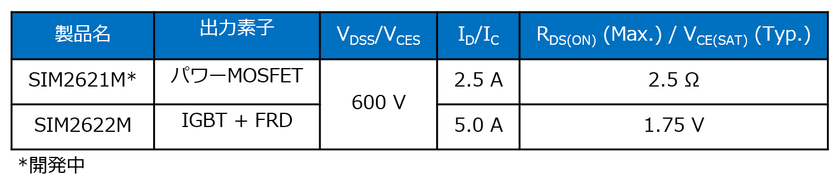 今回量産したSIM2622M(5.0 A)に加え、電流定格違いのSIM2621M(2.5 A)を開発中です。