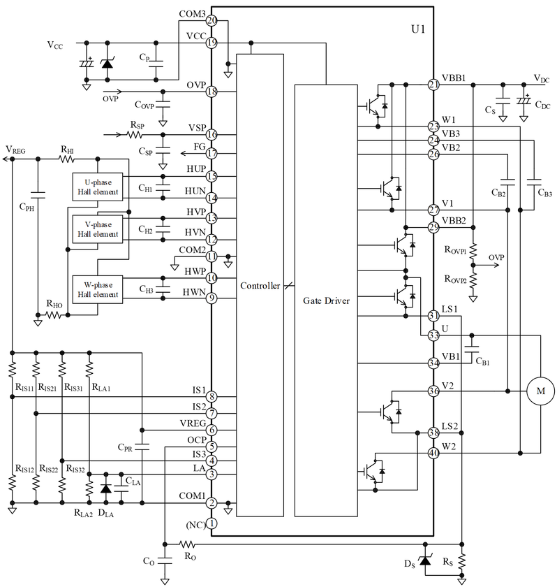 ■制御用ICを小型DIP40パッケージに内蔵、モータ制御用の外付けマイコンは不要