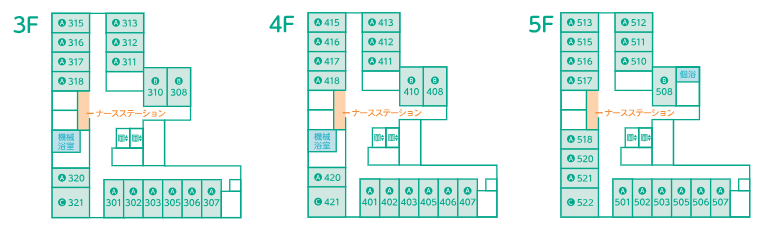 3階~5階:ホスピスフロア(居室数:52室)