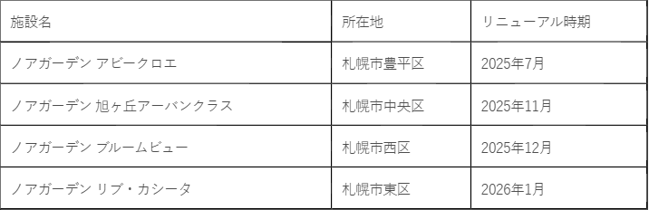 この度のリニューアルにより、札幌市内の高齢化に伴う医療・介護ニーズが増加する中で、要介護度が低い方から医療依存度が高い方(がん末期・神経難病等)までの受け入れが可能となり、住み慣れた地域での生活を最期まで継続いただきながら、ご利用者さまの希望に応じたケアを提供することが可能になります。当社は、本モデルの展開を通じて、地域医療・介護における多様化するニーズに応えてまいります。